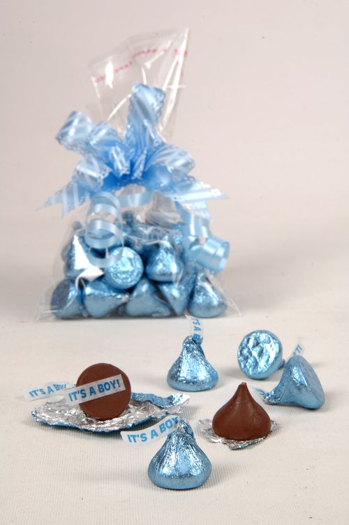 Please note that the Calypso Baby Boy shower favor set is available as a 20, 30 or 40 piece set. The number of pieces refers to the number of jumpsuits, note tags, cards, hangers and chocolates.